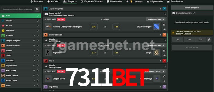 O 7311bet oferece uma grande seleção de opções de apostas em e-sports com probabilidades competitivas